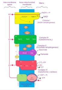 2. Complex II (Succinate Dehydrogenase): Accepts electrons from FADH₂ (produced in the citric acid cycle), and transfers them to ubiquinone, but unlike Complex I, it does not pump protons.