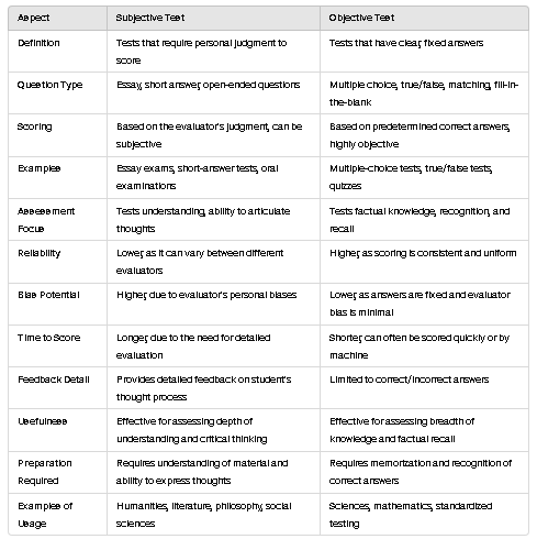 Differences between Subjective and Objective tests